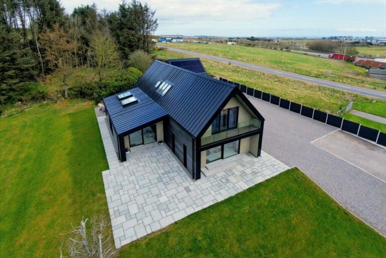This beautifully considered home showcases a full glazing package supplied by Ecowin, including triple glazed windows, large-format sliding doors, and a fully customed entrance door. Designed with a strong focus on minimising heat loss and maximising energy efficiency, the specification delivers high thermal performance without compromising.