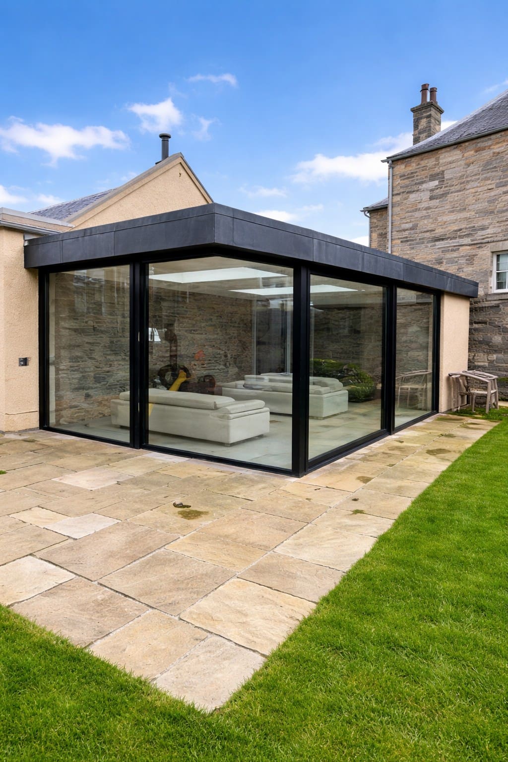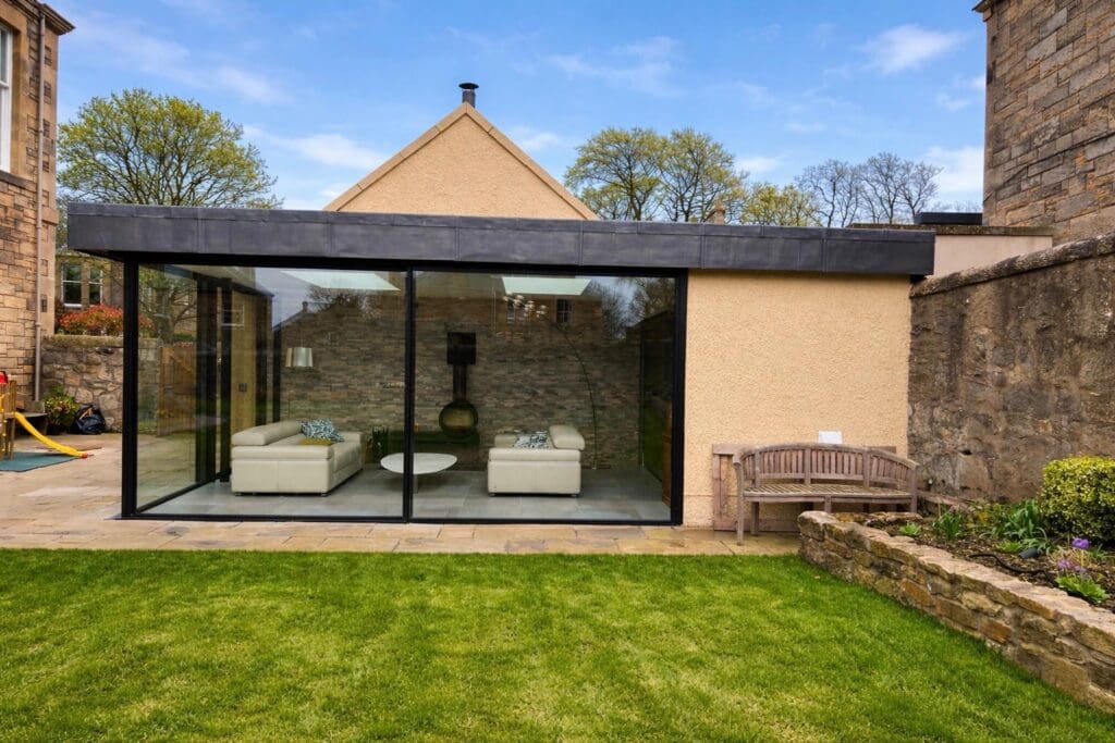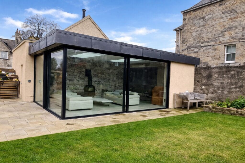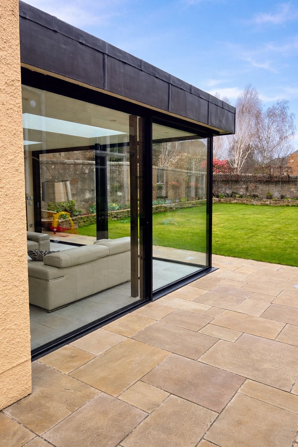 This contemporary Cero sliding glass unit delivers a seamless connection between indoor and outdoor living. Designed with ultra-slim sightlines and expansive floor-to-ceiling glazing, it maximizes natural light while maintaining a minimalist architectural aesthetic. The system features precision-engineered sliding panels that glide effortlessly, allowing large openings with minimal visual obstruction. Its high-performance glazing ensures excellent thermal insulation and weather resistance, making it as practical as it is visually striking. Finished in a sleek, modern frame, the Cero unit complements both traditional and contemporary properties—creating a bright, open living space with uninterrupted garden views.