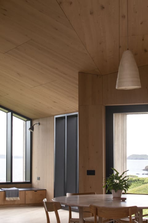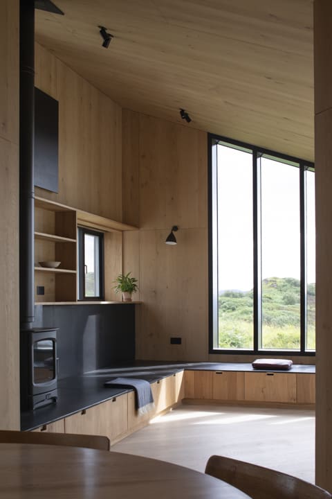 Supplied by Zyle Fenster, this high-performance triple-glazed Aluclad curtain walling creates a seamless connection between home and landscape. Designed for demanding coastal conditions, it combines slim sightlines with exceptional thermal efficiency, flooding the interior with natural light while maintaining superior insulation. The result is a striking, contemporary facade engineered for durability, built for comfort, and perfectly framed for the wild coastal views.